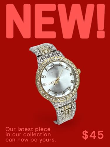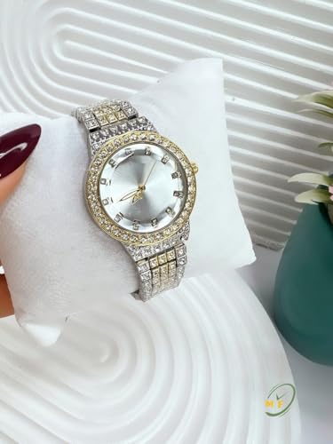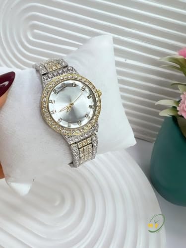 Generic - Luxury Women's Wrist Watch with Crystals, Gold and Silver Design, Stone Embellished Frame, Metal Strap