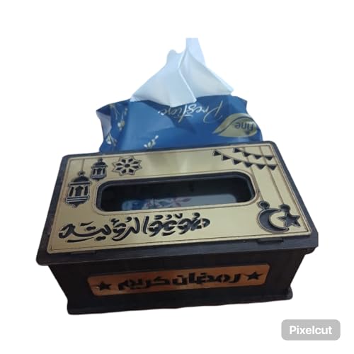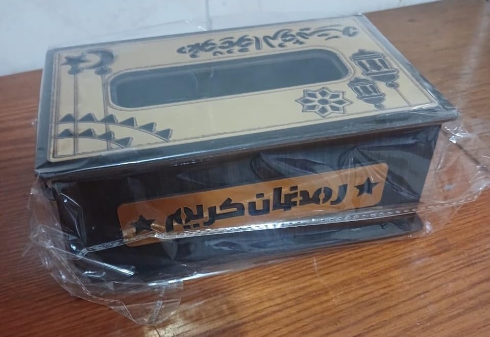 Generic - علبة مناديل فاخرة خشب ديكور لرمضان بتصميم زخرفى اسلامى للمسجد للمنزل والمكتب والسيارة Luxury wood decorative tissue box for Ramadan with Islamic decorative design for the