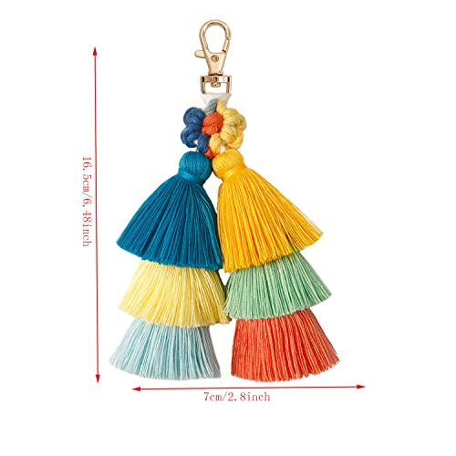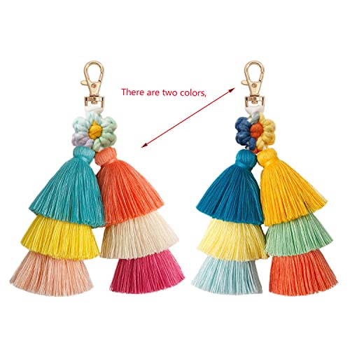 Luyzehor - سلسلة مفاتيح مكرمية مزينة بشراشيب مزينة بشراشيب بوهيمية ملونة من لويزيهور- سلسلة مفاتيح بتصميم زهرة الاقحوان للنساء، هدية مفاتيح