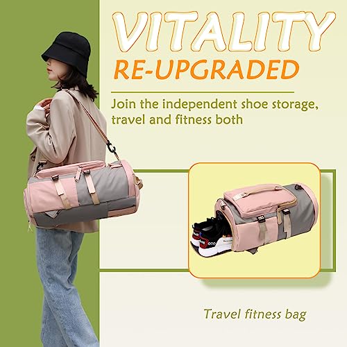 LWDZLHD - Pink Gym Bag for Women Sports Duffel Bag Travel Backpack Weekender Overnight Tote Carry On Bag with Wet Pocket and Shoe Compartment for Workout Yoga