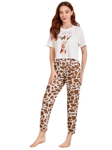 Generic - Lycra Cotton Pajama Set Cute Printed Sleeve T-Shirt Pants (style 2)