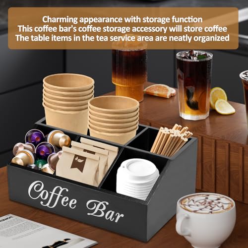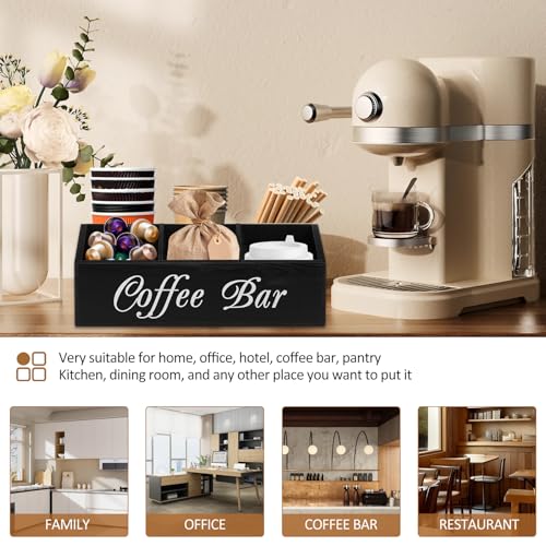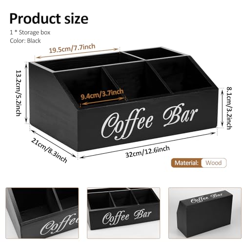 - 【منظم طاولة القهوة الخشبي】منظم طاولة القهوة هذا خفيف الوزن ومصنوع من خشب صلب عالي الجودة، مع سطح أملس وخالي من النتوءات. مطبوع يدويًا بحروف "Coffee Bar" على الجهة الأمامية، مقاس 12.6 × 8.3 × 5.2 انش، يسمح التصميم المفتوح بسهولة الوصول إلى العناصر