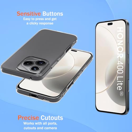 - The Cover Compatibility with HONOR 400 Lite mobile phone protective case is made of soft silicone TPU material, which is easy to install and disassemble and will not scratch your phone. Fingerprint resistant oleophobic coating provides anti-yellowing and long-lasting clarity.