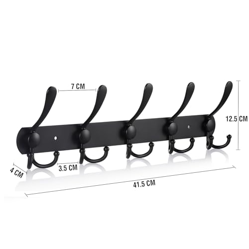 LYLIN - LYLIN Hook Rack Coat Hooks Stainless Steel Rustproof Towel Hooks Bathrobe Hooks Wall Coat Rack Approx. 30 kg Load Capacity (15 Hooks, Matt Black)