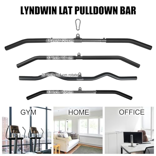 Lyndwin - Detachable LAT Pull Down Bar with Full Wrapped Rotating LAT Bar, Cable Machine Pull Down Bar Attachment, Triceps Biceps Pulldown bar for Home Gym (36in)