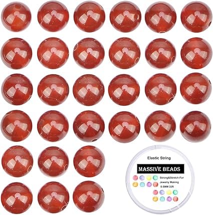 Generic - 100 قطعة من الاحجار الكريمة الكريستالية الطبيعية المستديرة السائبة للعلاج بالطاقة مع حبل كريستال مطاطي مجاني لصنع المجوهرات من ام ايه اس (كارنيليان، 6 ملم)