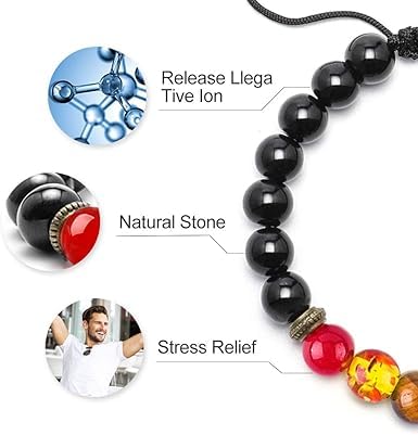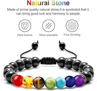 Generic - اساور خرز للرجال من ام ايه اس، اساور العقيق الاسود للرجال، اساور شاكرا، اساور خرز للرجال، هدايا مجوهرات للجد والابن والكريسماس
