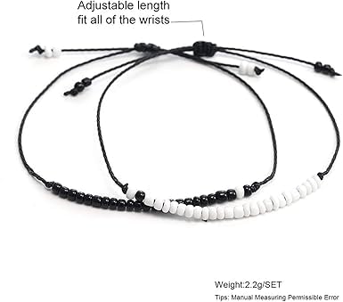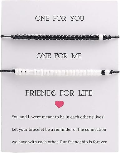 Generic - M.A.S Best Friend Morse Code Bracelet 2Pcs Set Stainless Steel Beads on Silk Cord Friendship BFF Bracelet Gift for Her Women (Keep Going)
