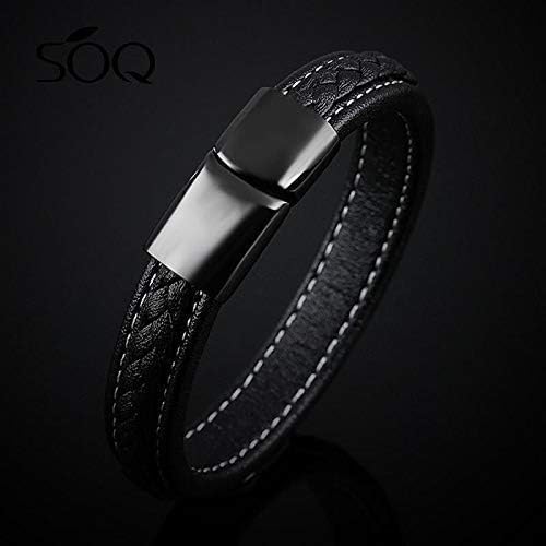 Generic - أساور حلقية من الجلد المضفر بمشبك مغناطيسي للرجال بلمسة نهائية مطلية من ام ايه اس، مقاس 19 إلى 22 سم