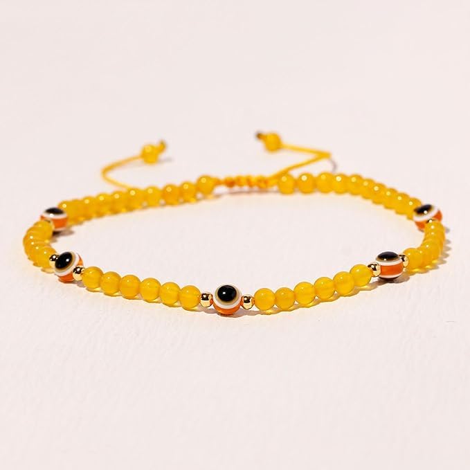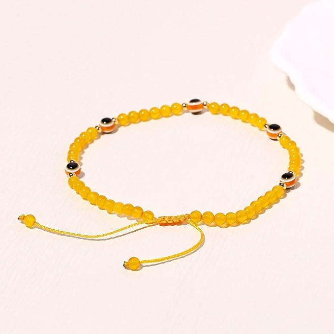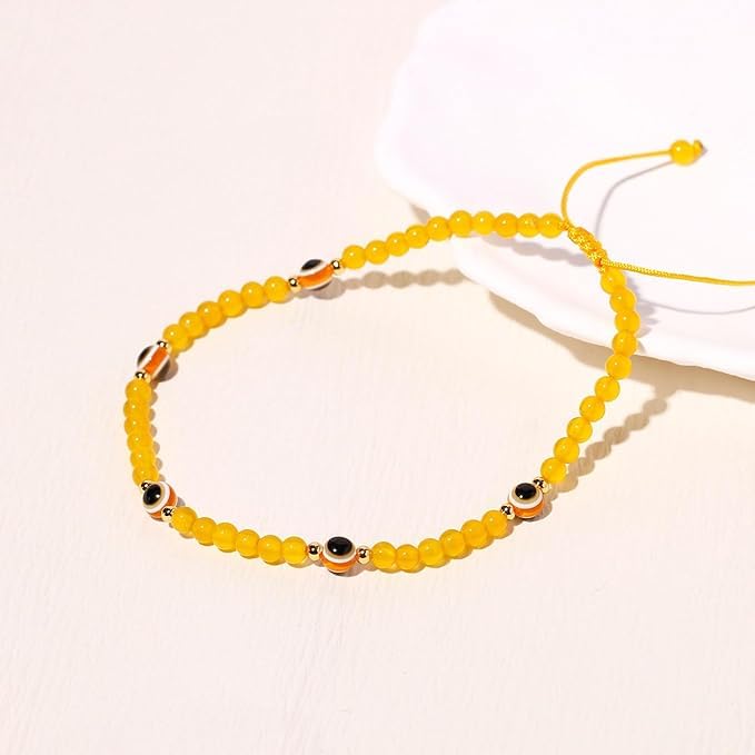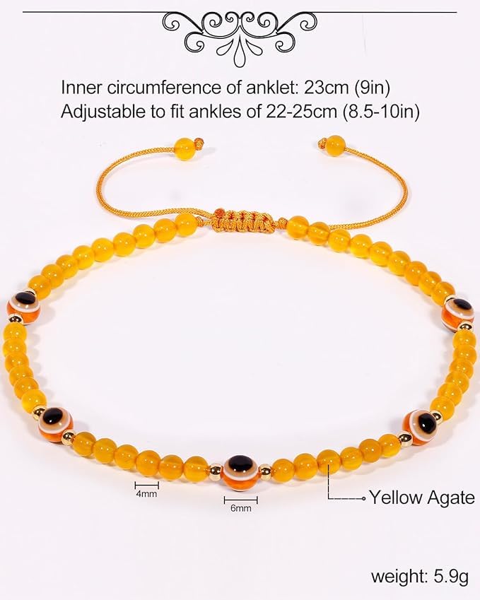 Generic - M.A.S Evil Eye Anklet Gemstones 4mm Agate Beaded Summer Beach Reiki Healing Crystals Ankle Bracelets for Women Jewelry Relieve Anxiety