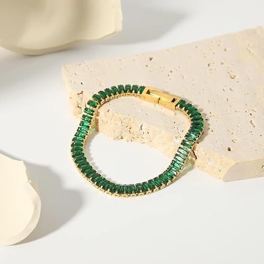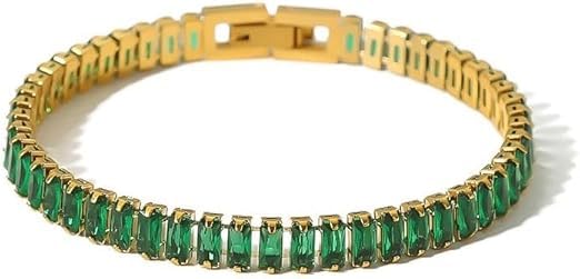 Generic - M.A.S Fashion Tennis Bracelets 14K Gold Plated Multi-Color Shiny Cubic Zirconia Tennis Bracelet Diamond Bracelet Mother's Day Birthday Gift for Women (Gold-Emerald)