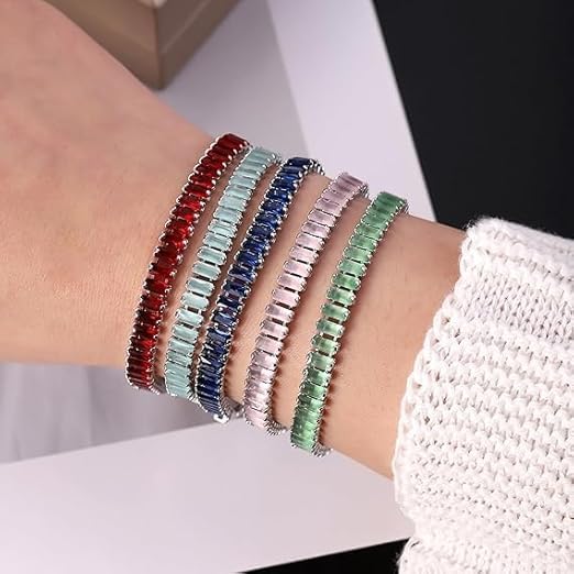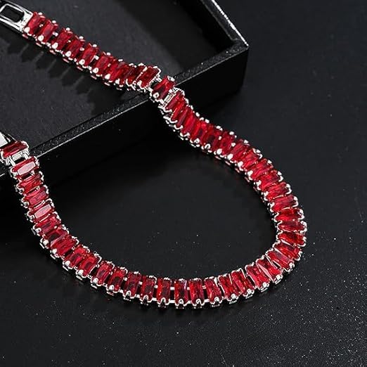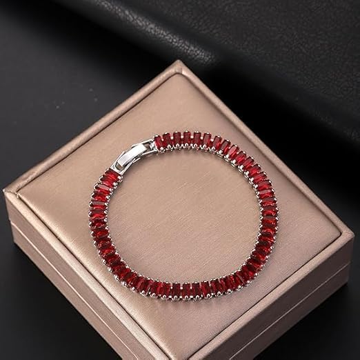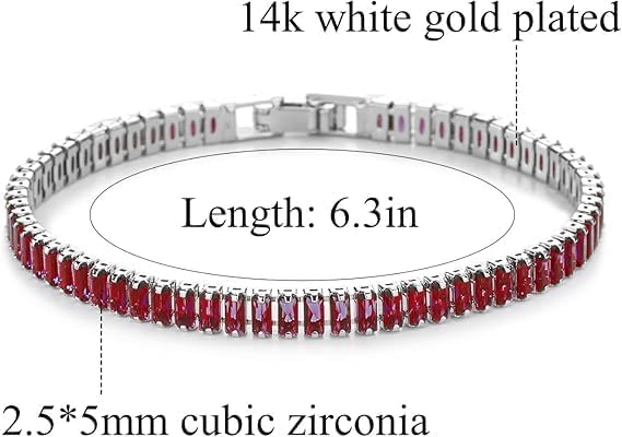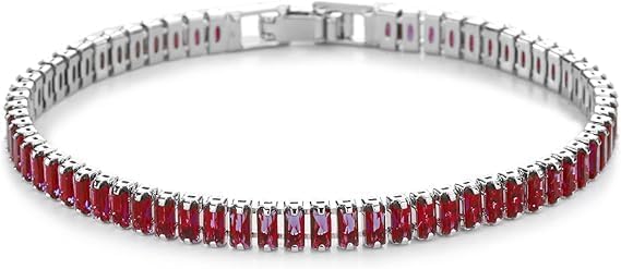 Generic - اساور تنس عصرية مطلية بالذهب عيار 14 قيراط من ام ايه اس، سوار تنس لامع مرصع بالزركونيا المكعب متعدد الالوان، سوار ماسي متعدد الالوان، هدية مجوهرات عيد الام وعيد الميلاد للنساء (فضي-روبي)