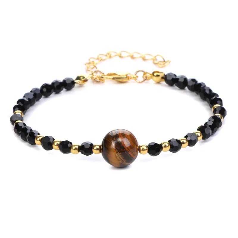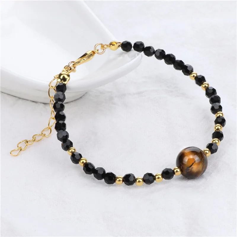 Generic - سوار مصنوع يدويا من الحجر الطبيعي غير المنتظم من ام ايه اس، سوار من حجر الشاكرا (كريستال اسود)، سوار من الخرز، سوار مجوهرات