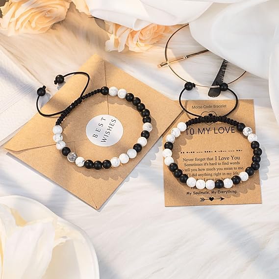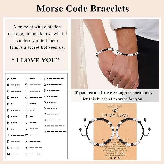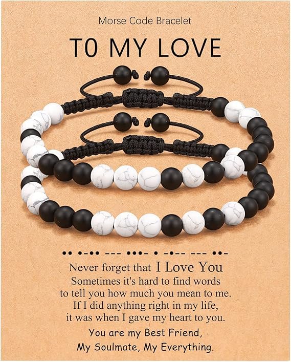 Generic - M.A.S Matching Couples Bracelets Boyfriend Girlfriend I Love You Morse Code Long Distance RelationshipValentines Day Gifts for Him Her Boyfriend Girlfriend Bf Gf