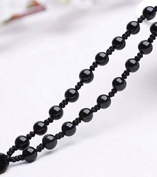 Generic - قلادة للرجال من الاحجار الكريمة السوداء القابلة للتمدد على شكل ذئب تاسك مع سلسلة من خرز العقيق اليماني مع سهولة التحكم في السقوط