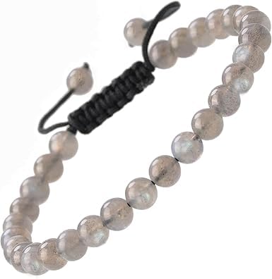 Generic - M.A.S Natural Healing Power Gemstone Crystal Beads Unisex Adjustable Macrame Bracelets (Labradorite, 8mm)
