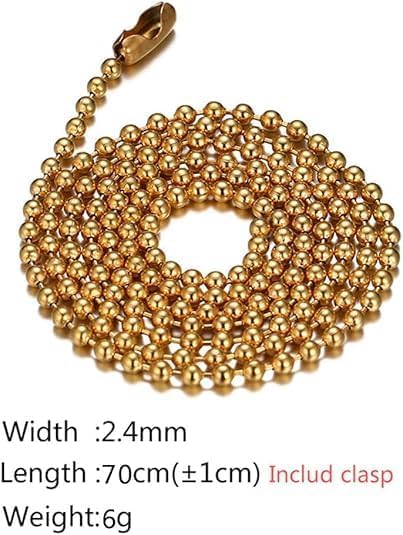 Generic - M.A.S Titanium Stainless Steel Small Bead Ball Necklace for Men Women Silver Black Gold Unisex Chain Jewelry - (Gold)
