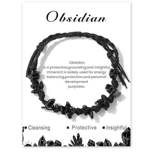 Generic - M.A.S Unique bracelet with a new irregular natural stone (obsidian) design. Braided rope bracelet for women, fashionable.BLACK .obsidian