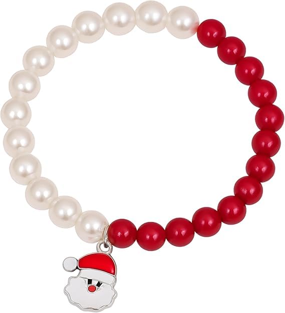 Generic - M.A .S Women’s Christmas Red Pearl Bracelet with Santa Pendant – Holiday Beaded Stretch Bracelet, Perfect Xmas Gift & Festive Accessory (Assorted shapes)