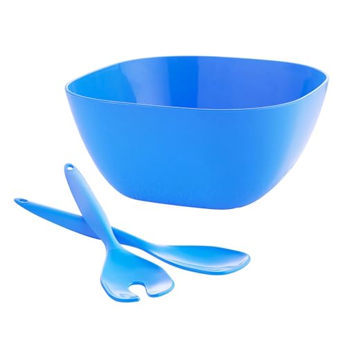 M-Design - طقم وعاء سلطة مكون من 3 قطع من ايدن (26 سم) من إم ديزاين + ملعقة وشوكة لتقديم السلطة (أزرق)