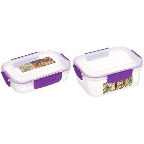 M-DESIGN - M Design Food Storage Box, 600 ml - Clear and Purple + M Design Food Storage Box, 1.6 Liter - Clear and Purple
