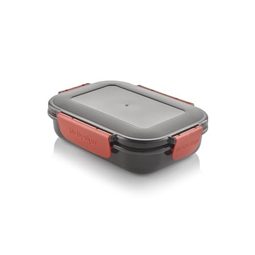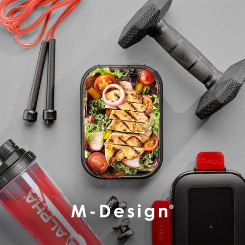 M-Design - M-Design Fresco™ Lunch Box 0.6L - Pack of 3 - BPA Free, Microwave Safe, Dishwasher Safe, Food Safe, Stackable - Smoke/Red
