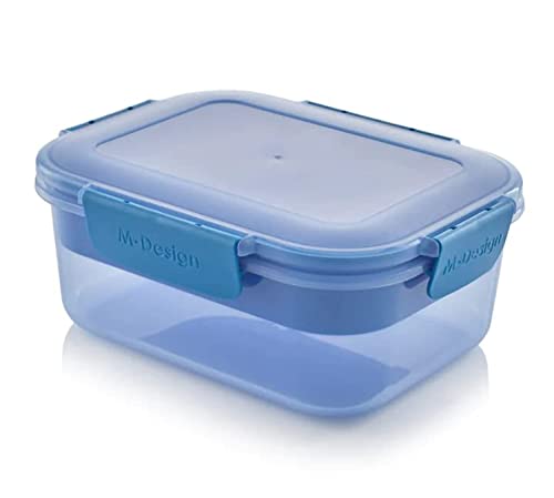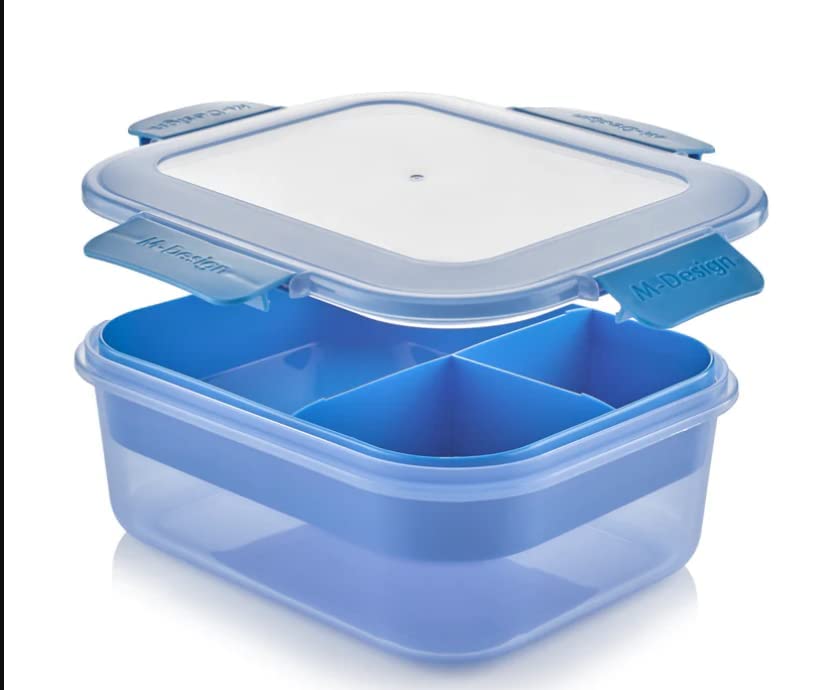 M design - لانش بوكس فريسكو باغطية واقسام 3 في 1 للاطفال والبالغين من ام ديزاين (2.1) لتر، لون ازرق، بولي بروبلين