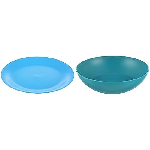 M-Design - طبق عشاء لايف ستايل من ام ديزاين 26 سم - أزرق + غويط 20 - مخضر بلاستيك