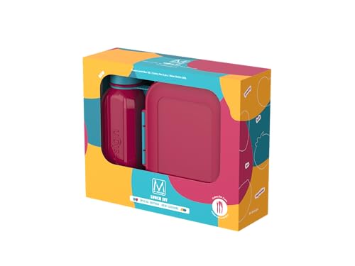 M-Design - لانش بوكس سعة 1.6 لتر مع زجاجة 650 ملليلتر من ام ديزاين، لون فوشيا وأزرق مخضر