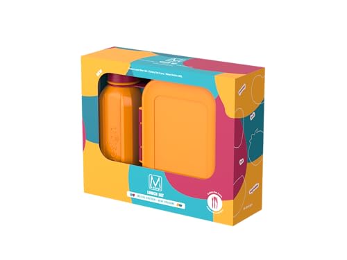 M-Design - علب حفظ طعام بسعة 1.6 لتر مع زجاجة 650 مل من ام ديزاين برتقالي/ فوشيا بولي ايثيلين
