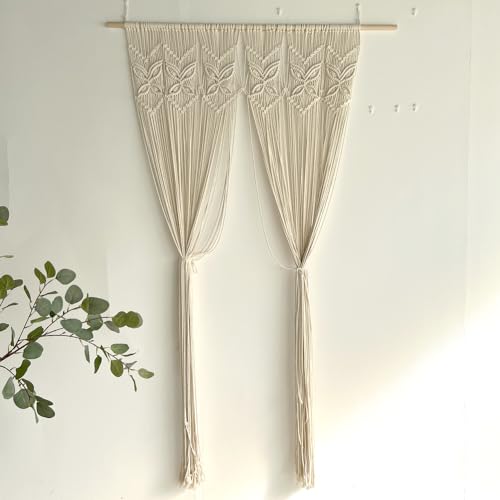 - 【Natural Material】Our macrame curtains is inspired by aztec tribal art objects and boho chic wall decor.Made of natural cotton cord,because of the handmade woven,the product has a certain degree of flexibility.The length can be trimmed to the length you want.