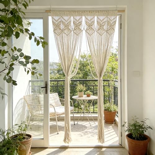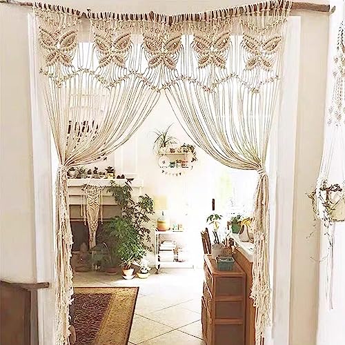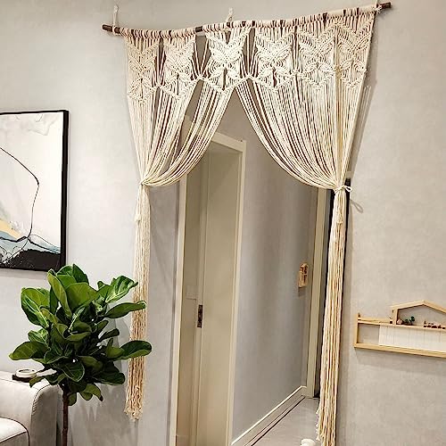 M MANUAL - Boho Doorway Curtains Macrame Valance Wall Hanging Home Macrame Woven Tapestry Butterfly Curtain Decoration Room Divider Headboard Wedding Backdrop 35'' W x79'' L