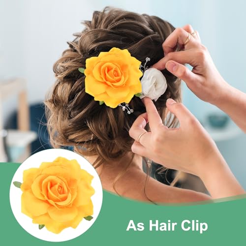 M METERXITY - عبوة مشابك الشعر على شكل زهرة، 3 قطع من ام ميتركستي، دبوس شعر من القماش على شكل زهور لحفلات الزفاف والحفلات، اكسسوارات الشعر للنساء، قطعة لتزيين الشعر بتصميم زهور بلون أصفر وأخضر وبيج وأبيض