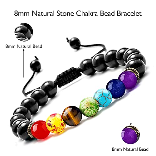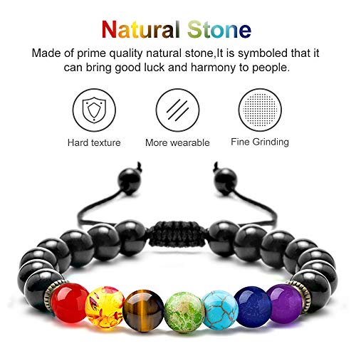 M MOOHAM - M MOOHAM Beaded Bracelets for Men, Black Agate Bracelets for Men Chakra Bracelets for Men Beaded Bracelets Mens Jewelry Gifts for Grandpa Gifts for Son Christmas Gifts for Grandson