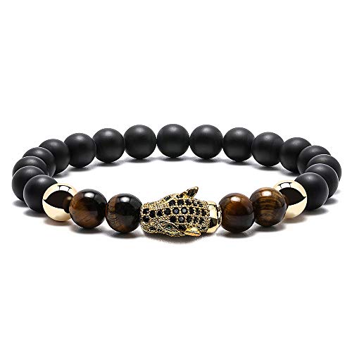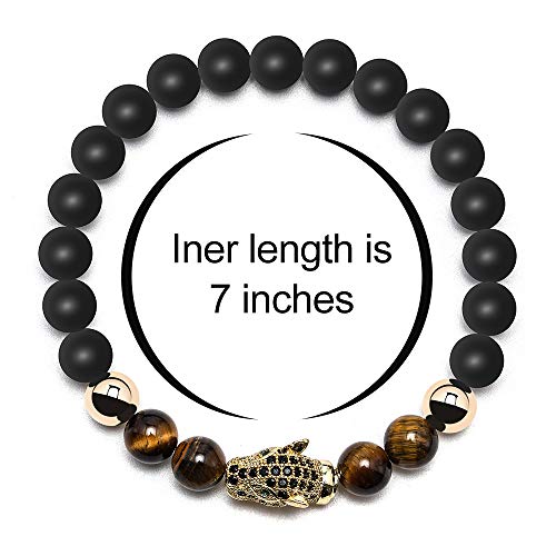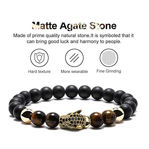 M MOOHAM - M MOOHAM Gold Leopard Mens Bracelet - Natural Tiger Eye Stone Black Matte Agate Bead Bracelet for Men Grandpa Gifts Dad Gifts Christmas Gifts for Men