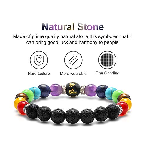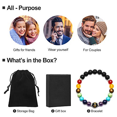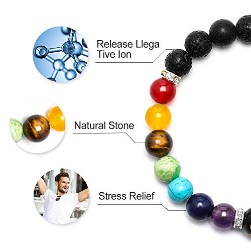 M MOOHAM - M MOOHAM Lava Rock Chakra Bracelet - 8mm Natural Stone Chakra Bead Lava Rock Bracelet, Men Women Stress Relief Yoga Beads Aromatherapy Essential Oil Diffuser Elastic Bracelet Bangle