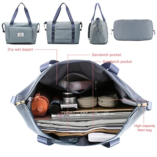M MUNCASO - Large Folding Travel Bag, Waterproof Foldable Travel Weekend Bag Gym Tote Bag for Travel, Gym, Blue