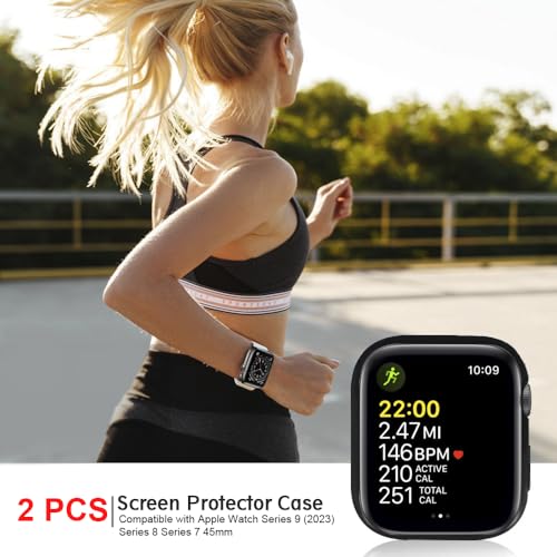 M MYECOGO - Compatible Apple Watch Series 4 Case 44mm, [2 Pack] iWatch 4 All-Around Soft TPU Protective Bumper Cover Case for 2018 Apple Watch Series 4 TPU Case Black (Black, 45mm)