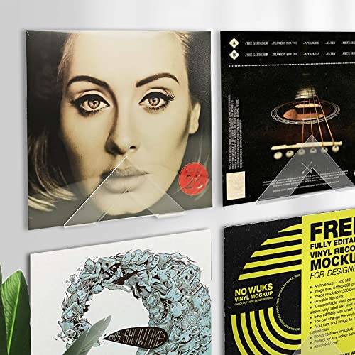M-sorflly - حامل فينيل يثبت على الحائط من ام سورفلي مكون 4 قطع رف اكريليك شفاف ممتاز للتسجيل الفينيل بتصميم مثلث لسجلات ال بي مقاس 12 بوصة رفوف عرض التسجيلات المعلق غير المرئي- مثقب او لاصق