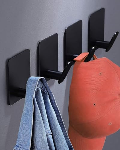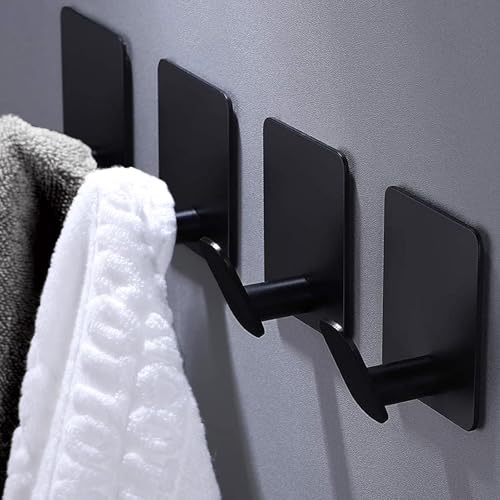 M-YOUNG - خطافات لاصقة لفوط الحمامات - خطافات لاصقة على حامل الفوط مثبت على الحائط، مقاومة للماء من الفولاذ المقاوم للصدأ، للتعليق في المطبخ والمنزل من ام -يونج، لون أسود، 4 قطع