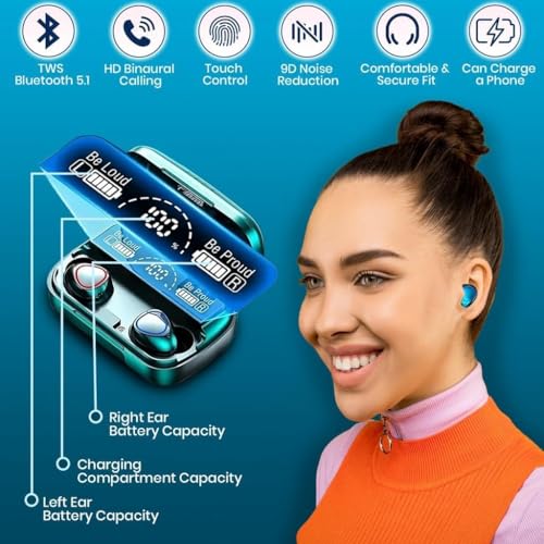 Tomorsi - سماعات اذن M10، سماعات اذن بلوتوث لاسلكية، هاي فاي ستيريو عميق، بلوتوث 5.3 تحكم باللمس، سماعات اذن صغيرة بميكروفون داخل الاذن مقاومة للماء IP7 شاشة LED لاجهزة ايفون واندرويد