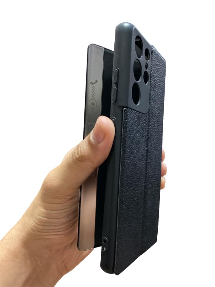 Generic - جراب فليب وش و ظهر فيو جديد من M7molge متوافق مع هاتف سامسونج جلاكسي S21 الترا - لون اسود