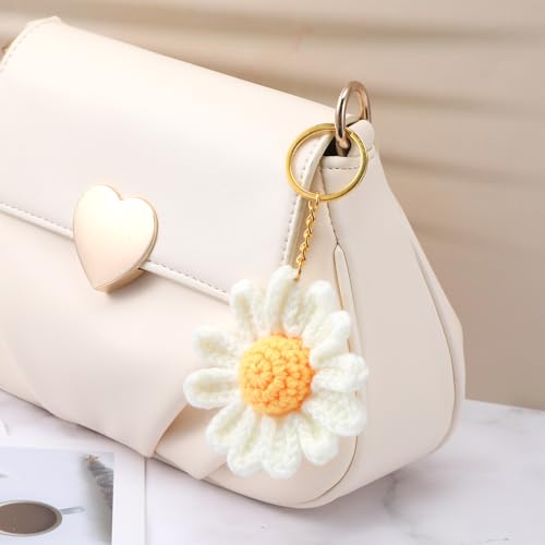 Mabor - Mabor Flower Keychain, Cute Crochet Keychain Flower Bag Charms for Women Handmade Daisy Floral Keyring Decor Gifts Purse Boho Accessorie for Purse, Handbag Bag, Earphone Case Women