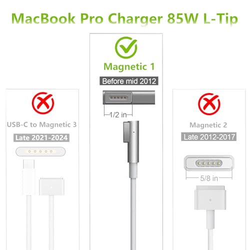 Yihele - Mac Book Pro Charger, 85W Mag 1 L-Tip Power Adapter, Compatible with Mac Book Pro 13 15 17 inch(Before Mid 2012)