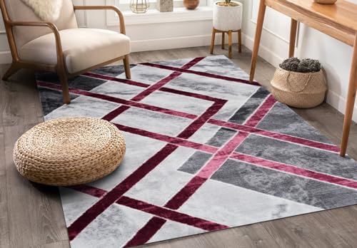 MAC CARPET S.A.E - Mac Carpet Cruze 3D Carved Rug Size: 80X160 cm - Burgundy & Gray