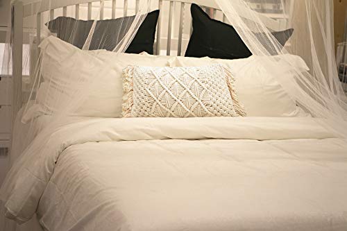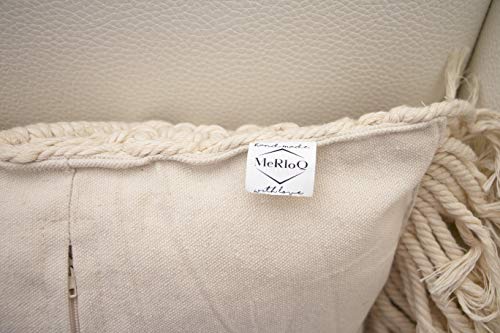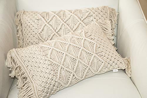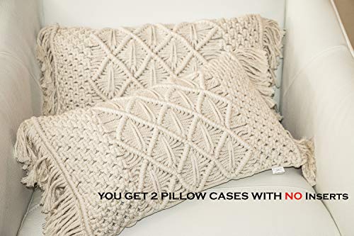 MeRloQ - Macramé Decorative Boho Covers, Set of 2 Comfy Throw Decor Cases, Sturdy Handmade for Lumbar Support, Great for Nursery, Office Chair, Accent for Couch, Sofa, Bedroom, Cream 12x20, No Pillow Inserts