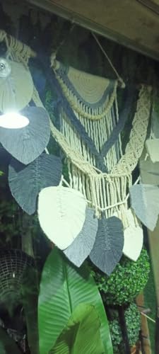 Generic - مكرمية عرض100 سم متدلية من عصا خشب تناسق أوراق الريشة المسحوب لأسفل - تصميم بوهيمي يدوي