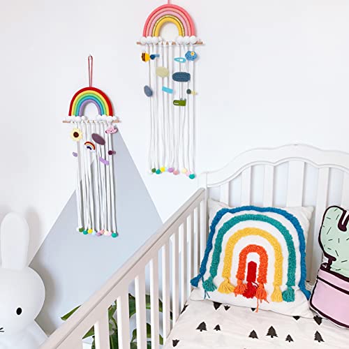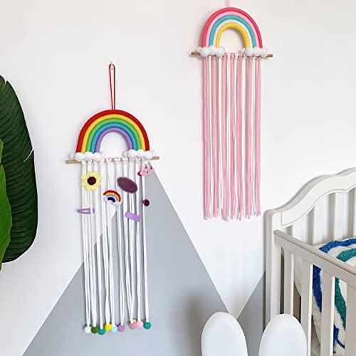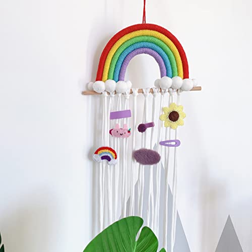 DFVEY - Macrame Rainbow Decor DFVEY Hair Clips Holder Hair Bow Hanging Hanger for Wall Décor for Nursery Girls Bedroom Baby Shower (Red)