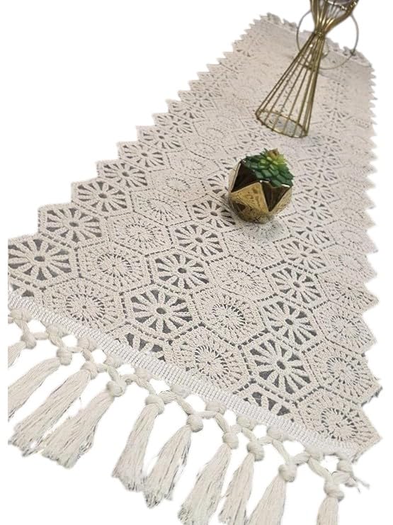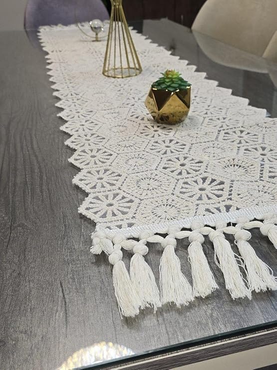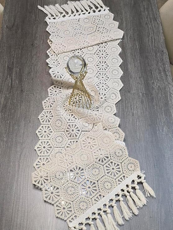 - Handwoven Craftsmanship: Meticulously crafted macrame table runner featuring intricate crochet design with beautiful geometric patterns that add bohemian charm to any dining or living space
