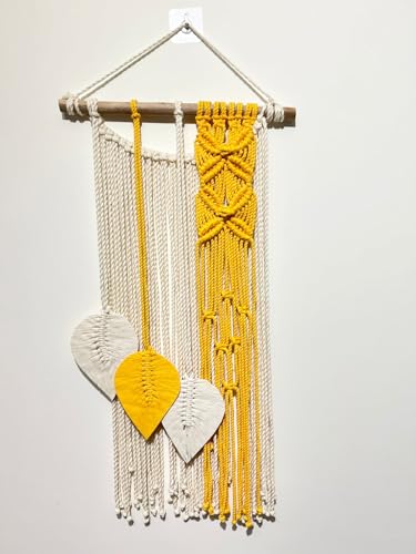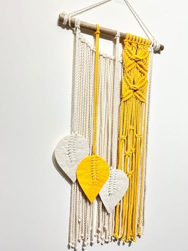 - HANDCRAFTED DESIGN: Beautiful macrame wall hanging featuring intricate woven patterns in yellow and white, creating an eye-catching boho-inspired piece